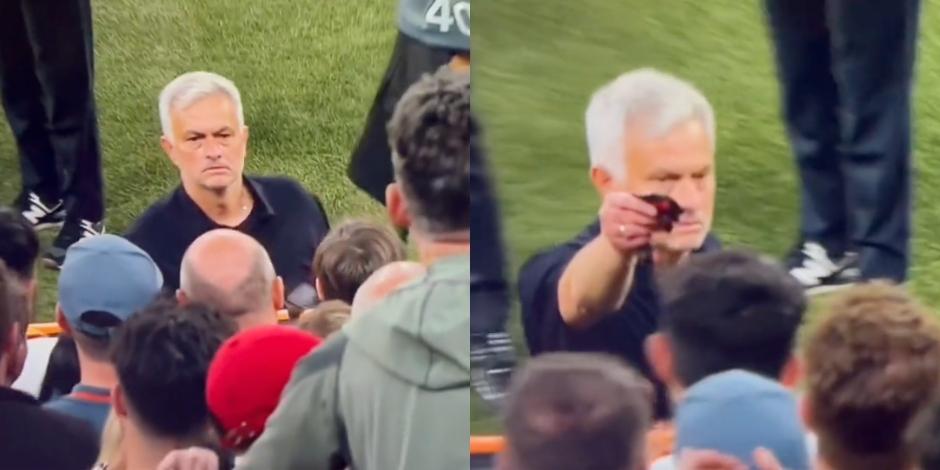 Mourinho, quien supo ganar la Liga de Europa con Porto y Manchester United, recibió su medalla de subcampeón, se la quitó de inmediato, y luego se dirigió a la zona de plateas donde la obsequió a un joven hincha de la Roma.