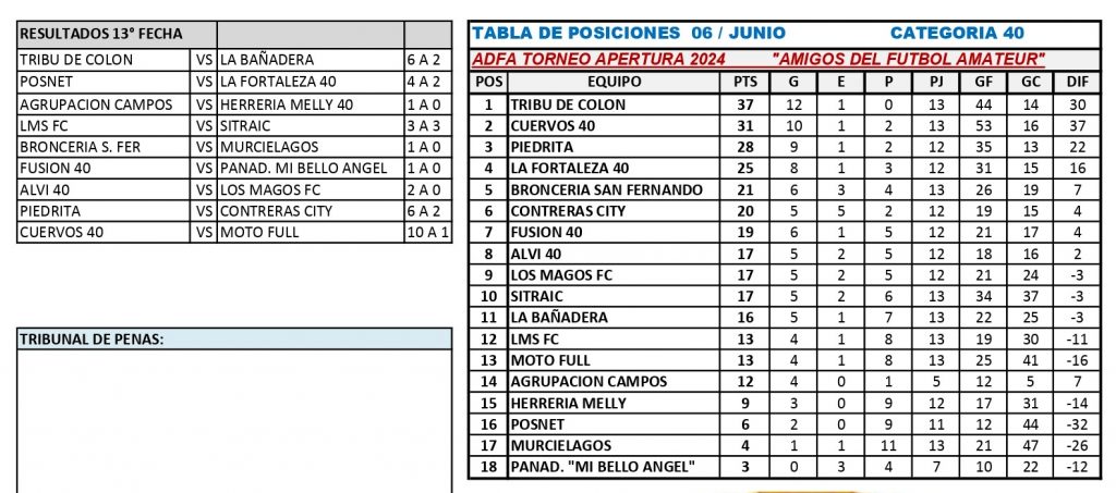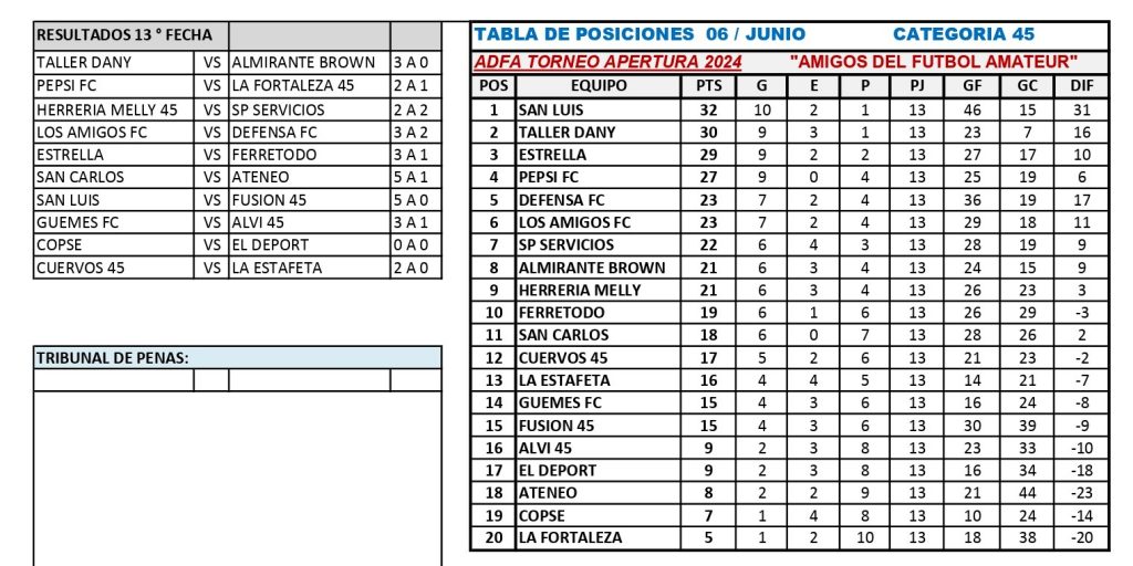 Este sábado, la Liga Amigos del Fútbol Amateur (ADFA), hará disputar la 14ta fecha del torneo Apertura “David Jerez” en sus dos categorías.