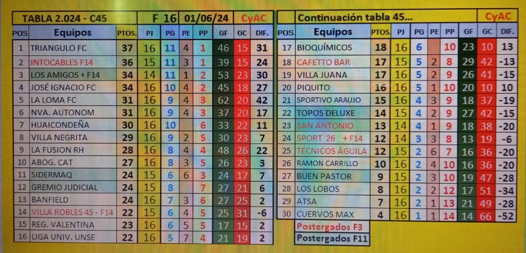 TABLA DE POSICIONES
