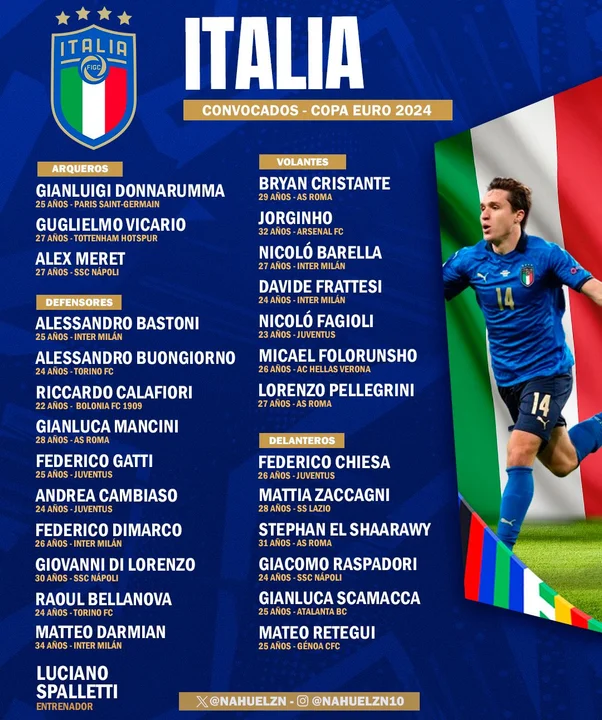 En la Eurocopa 2024, que se llevará a cabo en Alemania y comenzará el 14 de junio, Italia buscará defender el título continental obtenido en 2021, cuando derrotaron por penales a Inglaterra en la final que se jugó en Wembley.