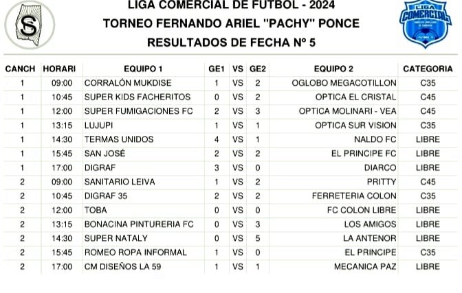 Asimismo se ofrecemos los resultados registrados por la quinta fecha que se llevó ca cabo el pasado domingo.