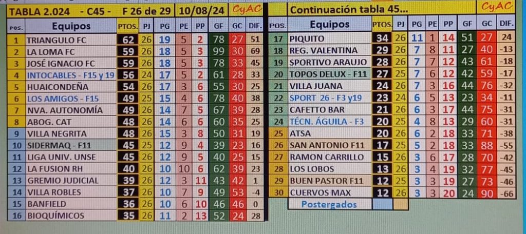 El Triángulo es el líder absoluto del torneo Anual de la Liga CyAC. Marcha con 62, a tres de su más inmediato perseguidor. Este sábado irá por más ante Villa Juana en cancha de El Cholo Suárez en el primer turno.