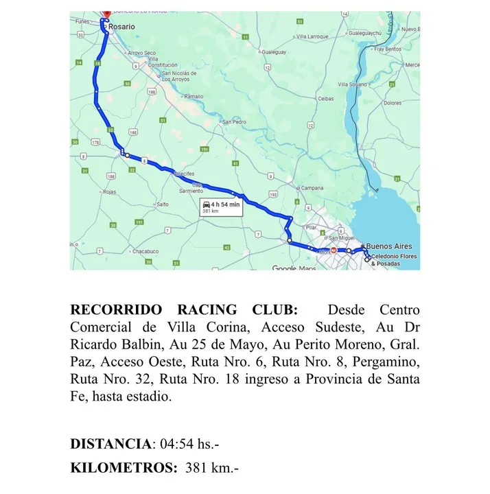 En tanto, los de la “Academia” pasarán por Autopista 25 de Mayo, Perito Moreno, Avenida General Paz y Acceso Oeste; luego recorrerán Ruta 6, 8 (hasta Pergamino), Ruta 32 y luego 18.