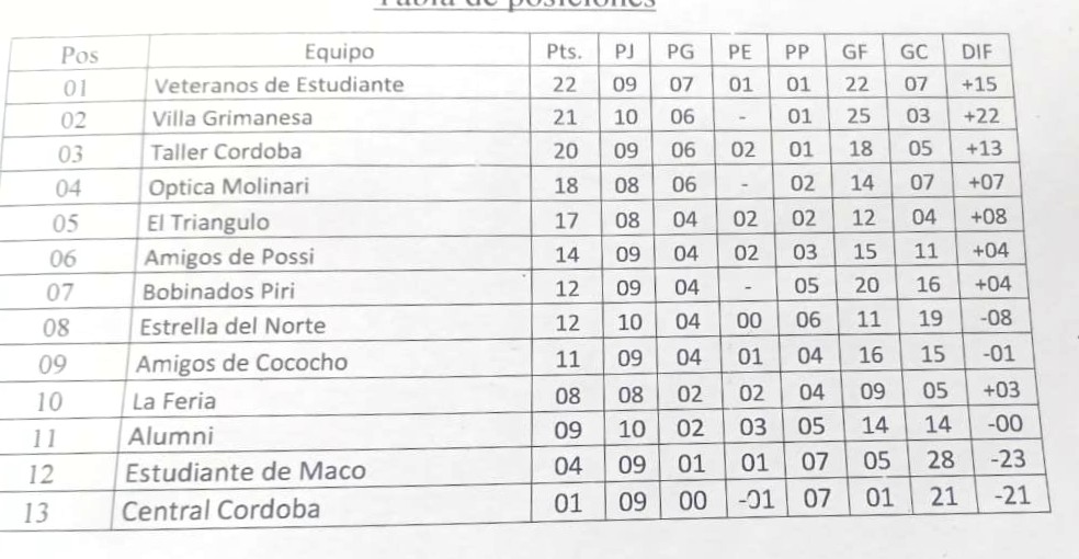 2) Veteranos de Estudiantes 2 – Central Córdoba 0