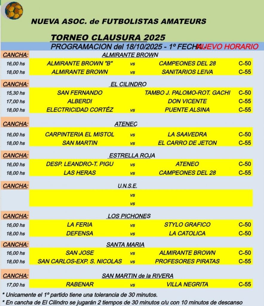 La Nueva Asociación dispuso la 1era fecha con nuevo horario para el Clausura 2025