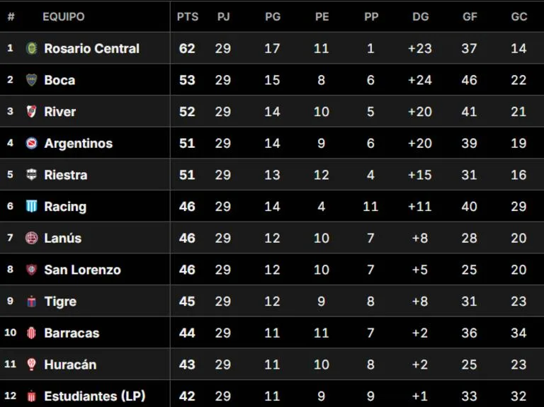 El Torneo Clausura entró en su etapa final y, además de consagrar a un nuevo campeón y condenar a dos equipos al descenso de categoría, definirá a los clasificados para la Copa Libertadores y la Copa Sudamericana 2026.