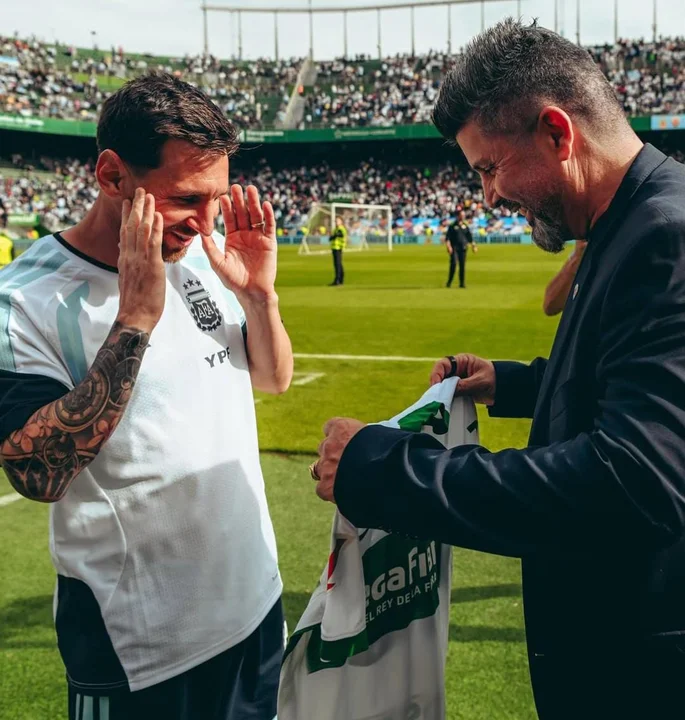 El gesto no pasó desapercibido: más allá de la sorpresa por verlo con la camiseta del conjunto ilicitano, la presencia de Messi en el Martínez Valero volvió a confirmar su magnetismo universal.