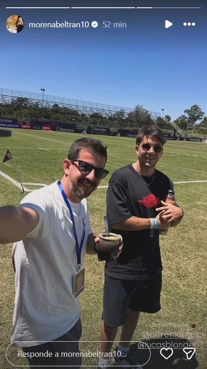 Al ex Tigre se lo vio junto al periodista Alfredo Montes De Oca en una historia de Instagram que publicó la también periodista, Morena Beltrán, actual pareja del futbolista.