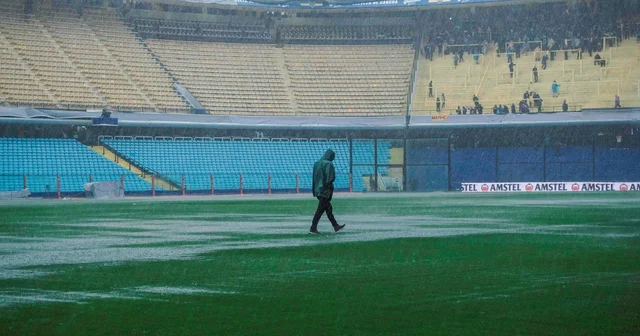 La Bombonera luego de las lluvias del 10 de noviembre, con un campo de juego impracticable.