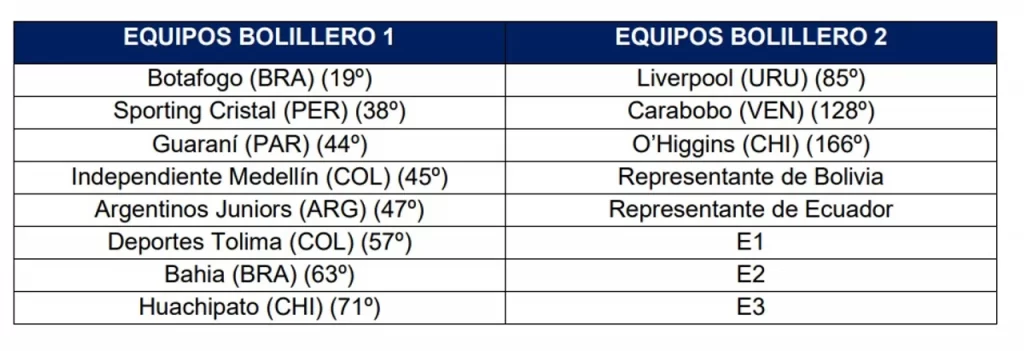 La distribución de los bolilleros estuvo determinada por el Ranking de Clubes de la CONMEBOL al 16 de diciembre de 2024: los peor ubicados jugarán la ida como locales y los mejor posicionados definirán en casa.