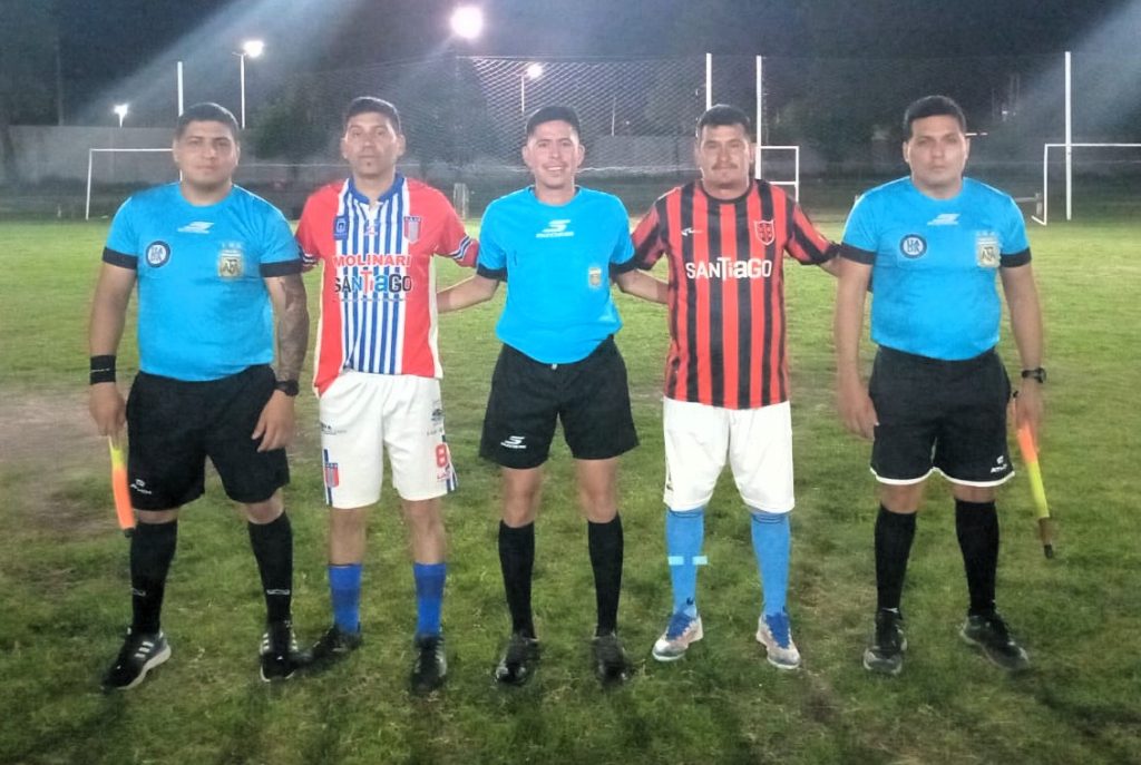 Árbitro Barraza Enzo Lautaro, A1: Diaz David, A2: Diaz Franco, capitanes; Mario Indio Medina (Comercio) y Gustavo González (Union Sgo).