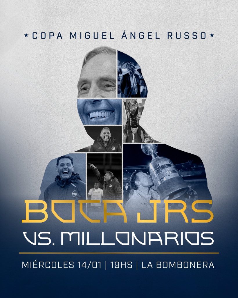 Boca anunció este lunes que el amistoso que disputará ante Millonarios de Colombia el miércoles 14 de enero en La Bombonera será en honor al fallecido director técnico Miguel Ángel Russo, quien dirigió ambos conjuntos.