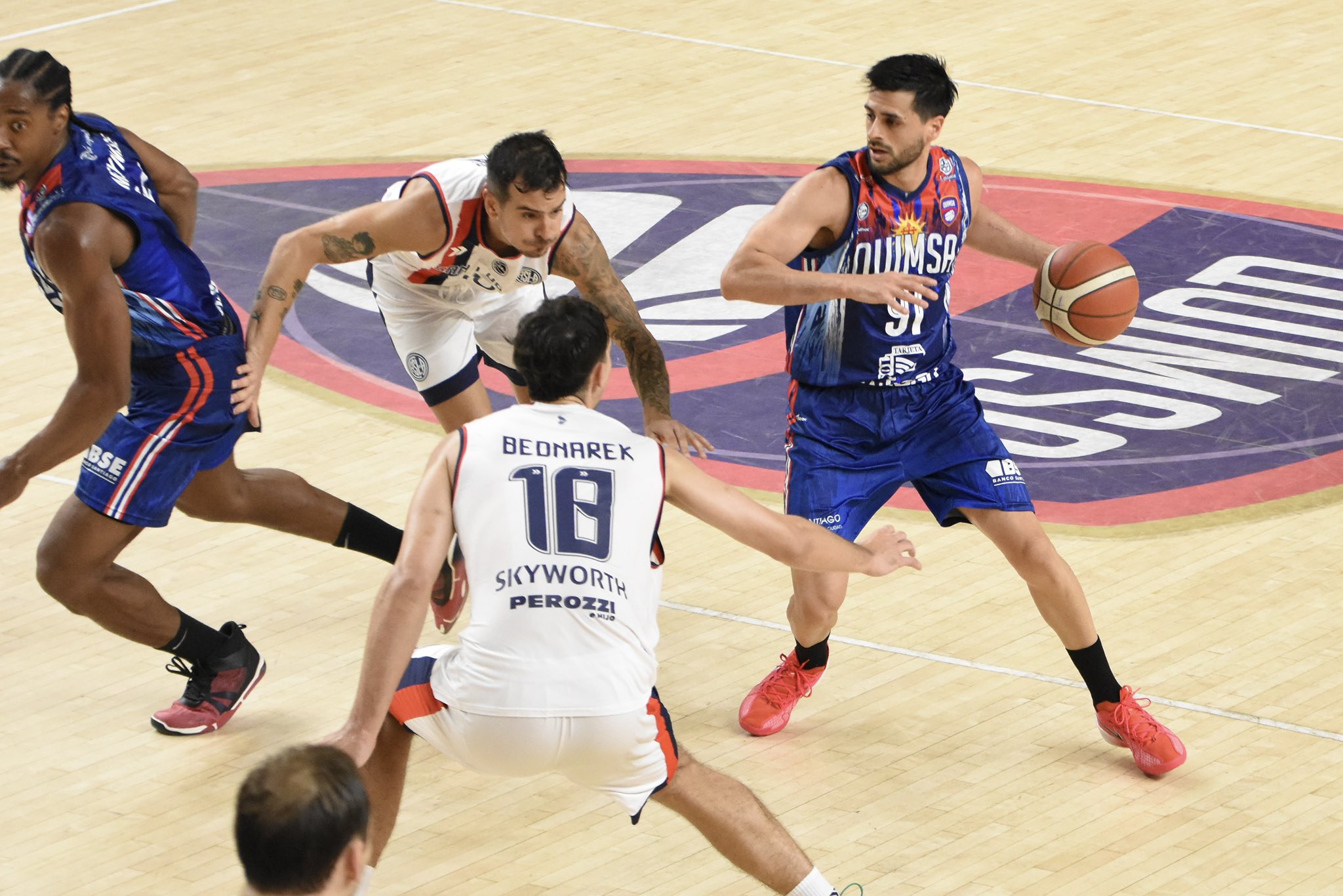 El venezolano continuó lastimando y el negro bandeño encontró en Vieta y Bressan a los laderos ideales, con 8 puntos cada uno. Sin embargo, San Lorenzo aprovechó las caídas de Bednarek (12 puntos) y se sostuvo cerca, llegando al entretiempo con los locales arriba por 45-42.