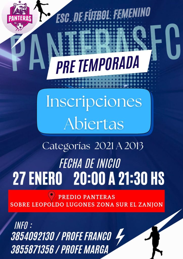 Escuela de fútbol femenino Panteras FC abre las inscripciones para nenas nenas de 4 a 12 años de edad.