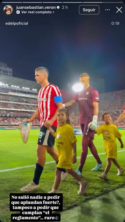 El presidente de Estudiantes de La Plata, Juan Sebastián Verón, publicó una picante historia en sus redes sociales luego del pasillo que le hizo Boca a los jugadores del “Pincha” por su título en el Torneo Clausura: “¿Nadie salió a pedir que aplaudan fuerte?”.