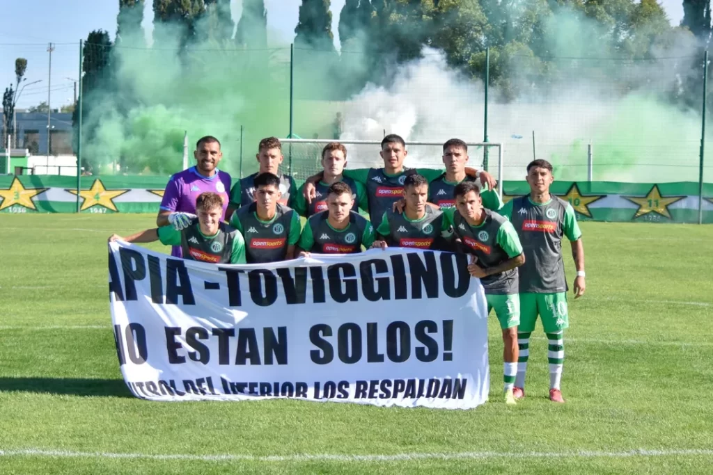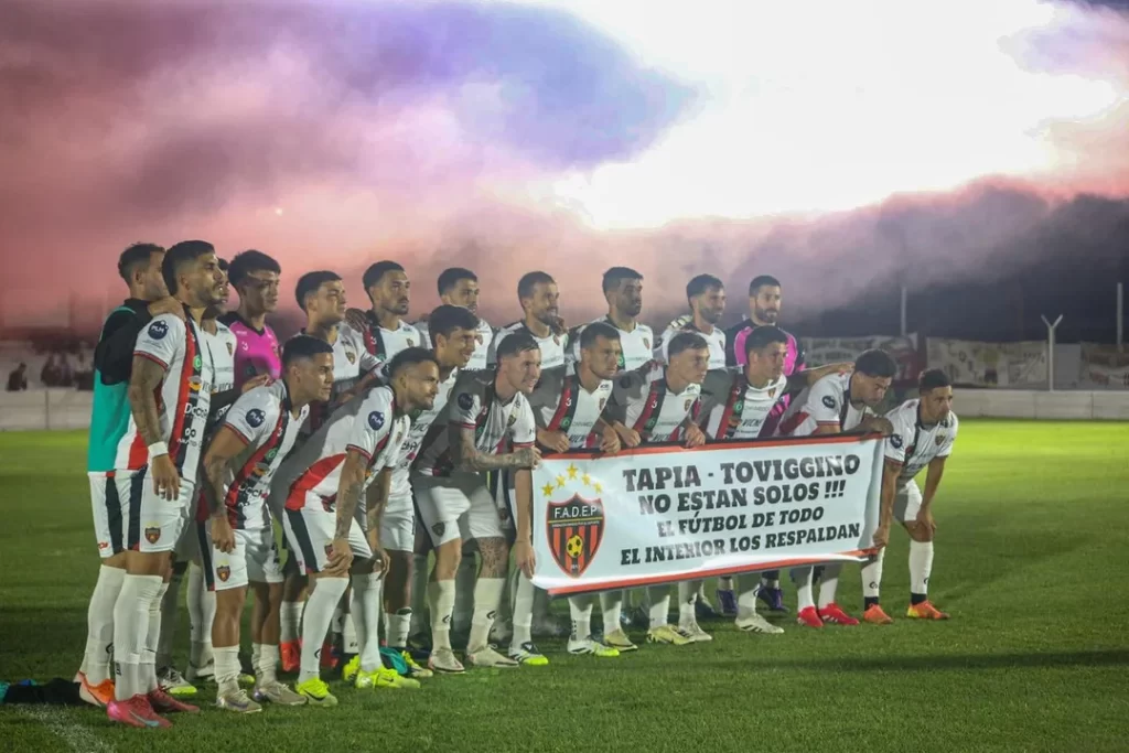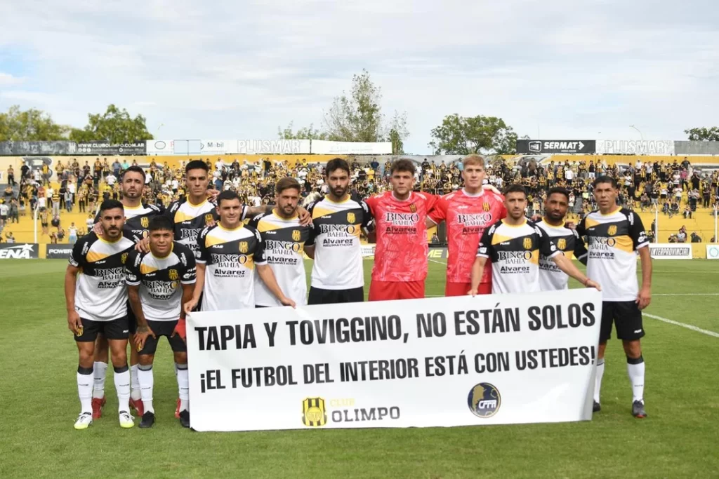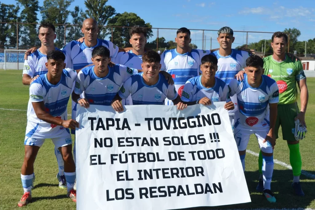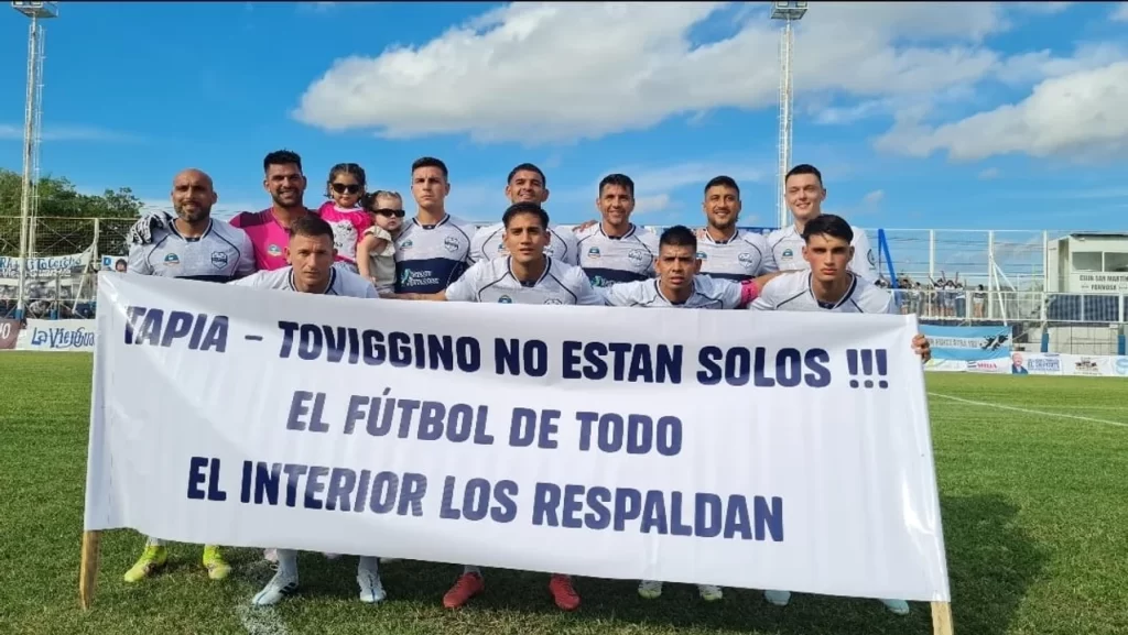 En medio de los embates del Gobierno, la AFA y su conducción, representada en Claudio “Chiqui” Tapia y Pablo Toviggino, recibieron un fuerte respaldo por parte de los clubes del interior del país. Varias instituciones del Federal A saltaron al campo de juego con una bandera alusiva al presidente de la casa madre y el tesorero: “Tapia y Toviggino, no están solos. El fútbol de todo el interior los respalda”, rezaron las pancartas en cada cancha del ascenso argentino.