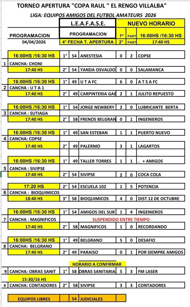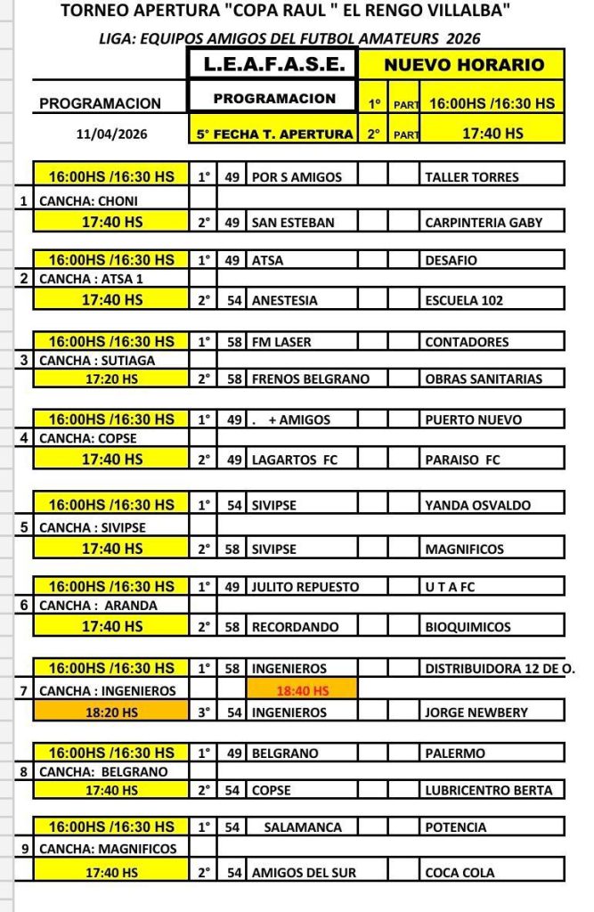 El programa completo de partidos será el siguiente: