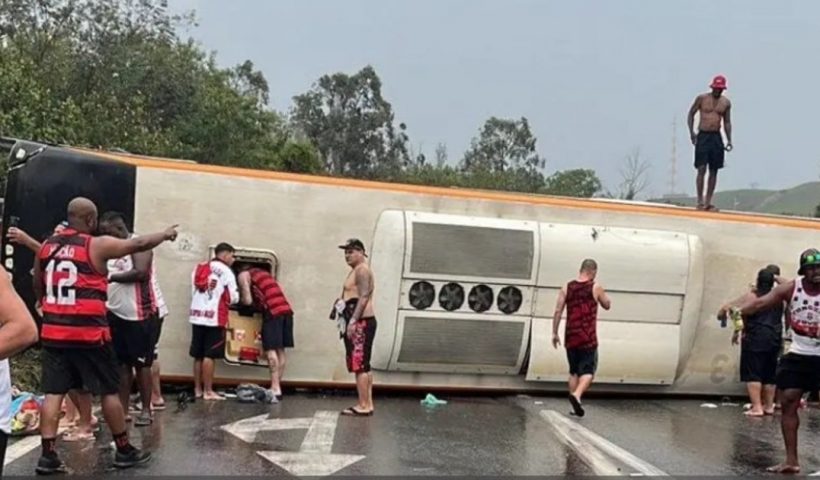 VIDEO IMPACTANTE: El momento exacto en que vuelca el micro de Flamengo que venía a jugar con Racing